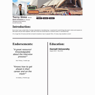 Priority was put on a toggle that would filter the search results based on whether the user set it to search for just mentors, mentees, or general people. In their profile, the user could tag themselves as a mentor, so they could search for anyone while still showing up as a mentor in the results of other users.